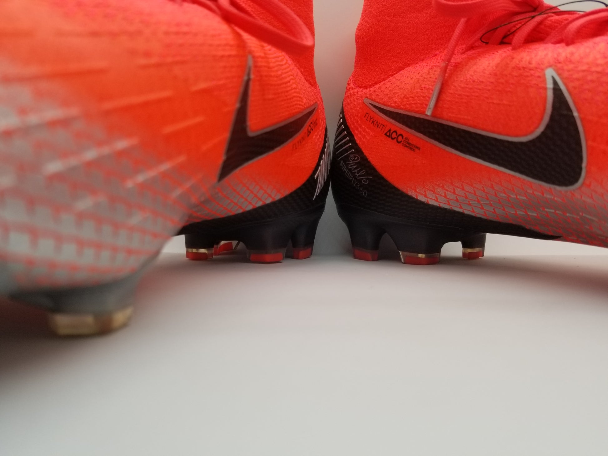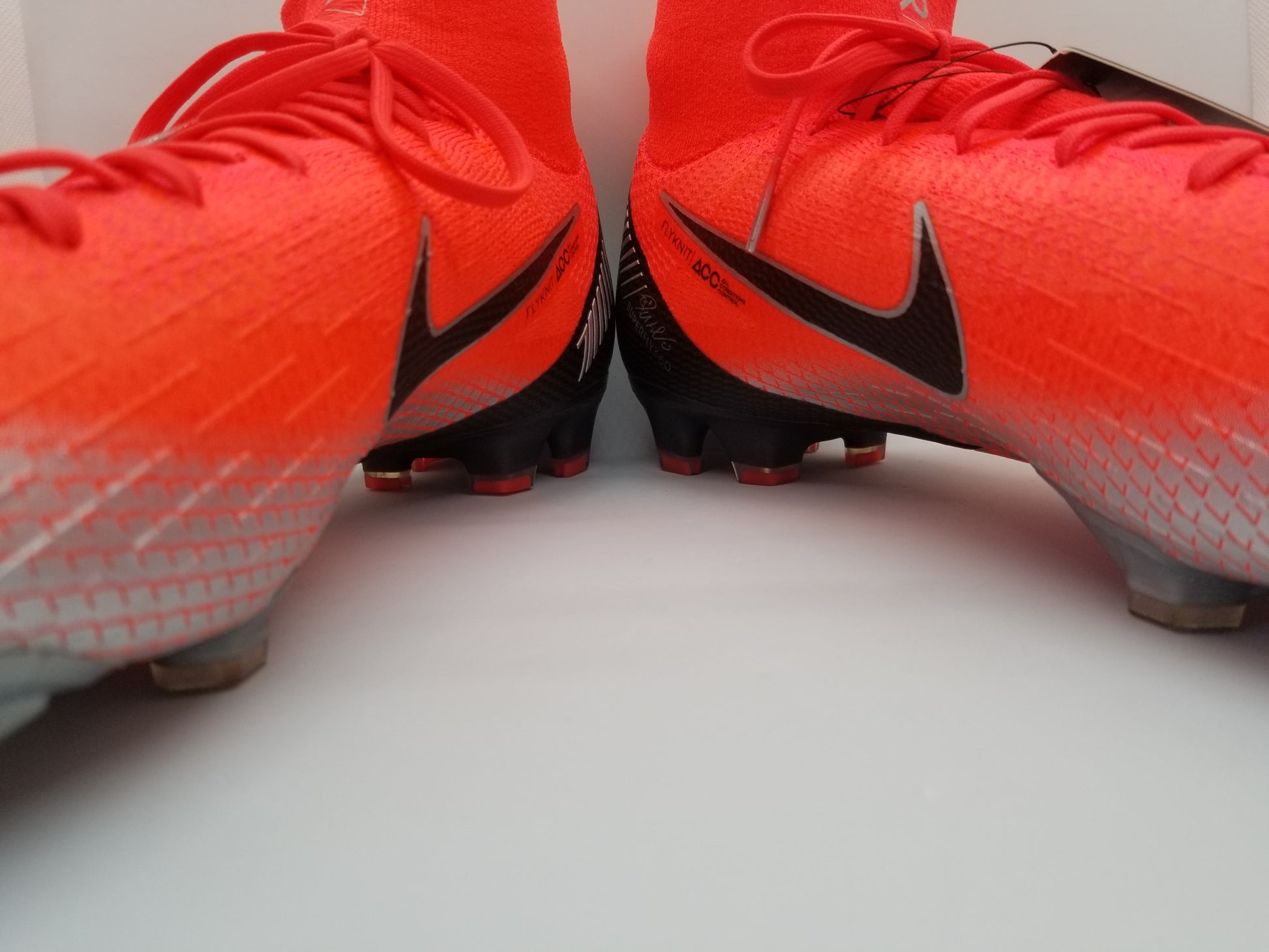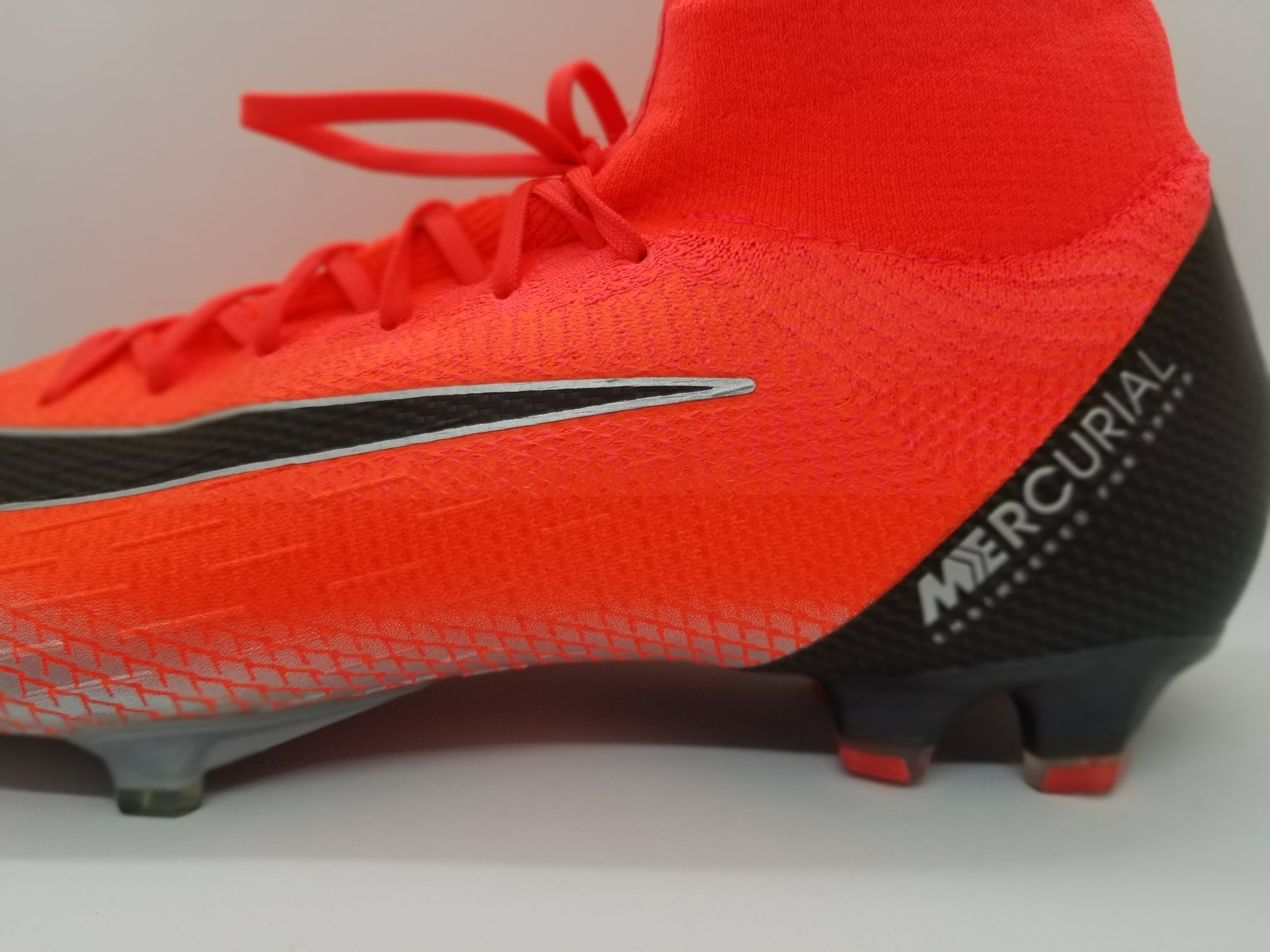 The upper is made from a single piece of Flyknit, being extremely flexible. It features microtexture for an improved grip on the ball, when moving in high speed. The full Flyknit design covers the entire boot and you foot, following the movements of your foot - creating a feel of a second layer of skin, a truly unique fit and incomprehensible level of comfort. The upper has been treated with NIKESKIN and ACC (All Conditions Control). NIKESKIN is an ultra thin PU layer that has been combined with performance mesh, to allow for a light breathable and tight fit. ACC is an integrated coating that enhances the touch and control of the football, in all weather conditions. The inside of the boot has been lined with high quality material. In the heel area it is lined with suede like material, that ensures an improved lockdown. Perforation in this area also adds to the breathability.